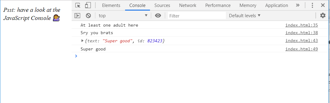 results2 ? console.log("Wow you all grow up") : console.log('Sry you brats');
