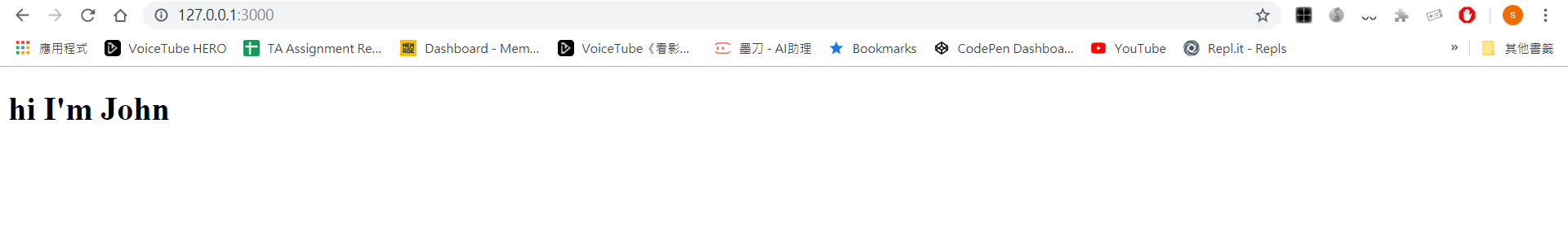 運行程式後,去localhost:3000確認一下結果,你應該會看到這樣的畫面。