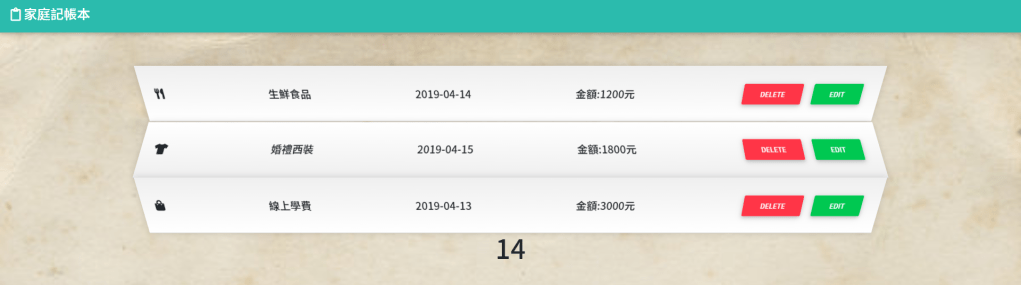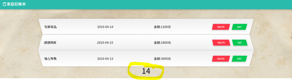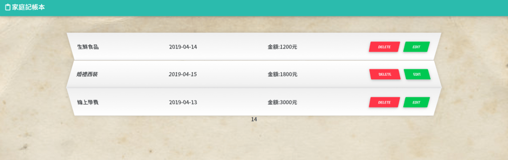 為了在頁面上呈現消費紀錄,你從資料庫抓資料出來並利用each將每一筆資料印出,一切都很順利,你做出類似這樣的效果。